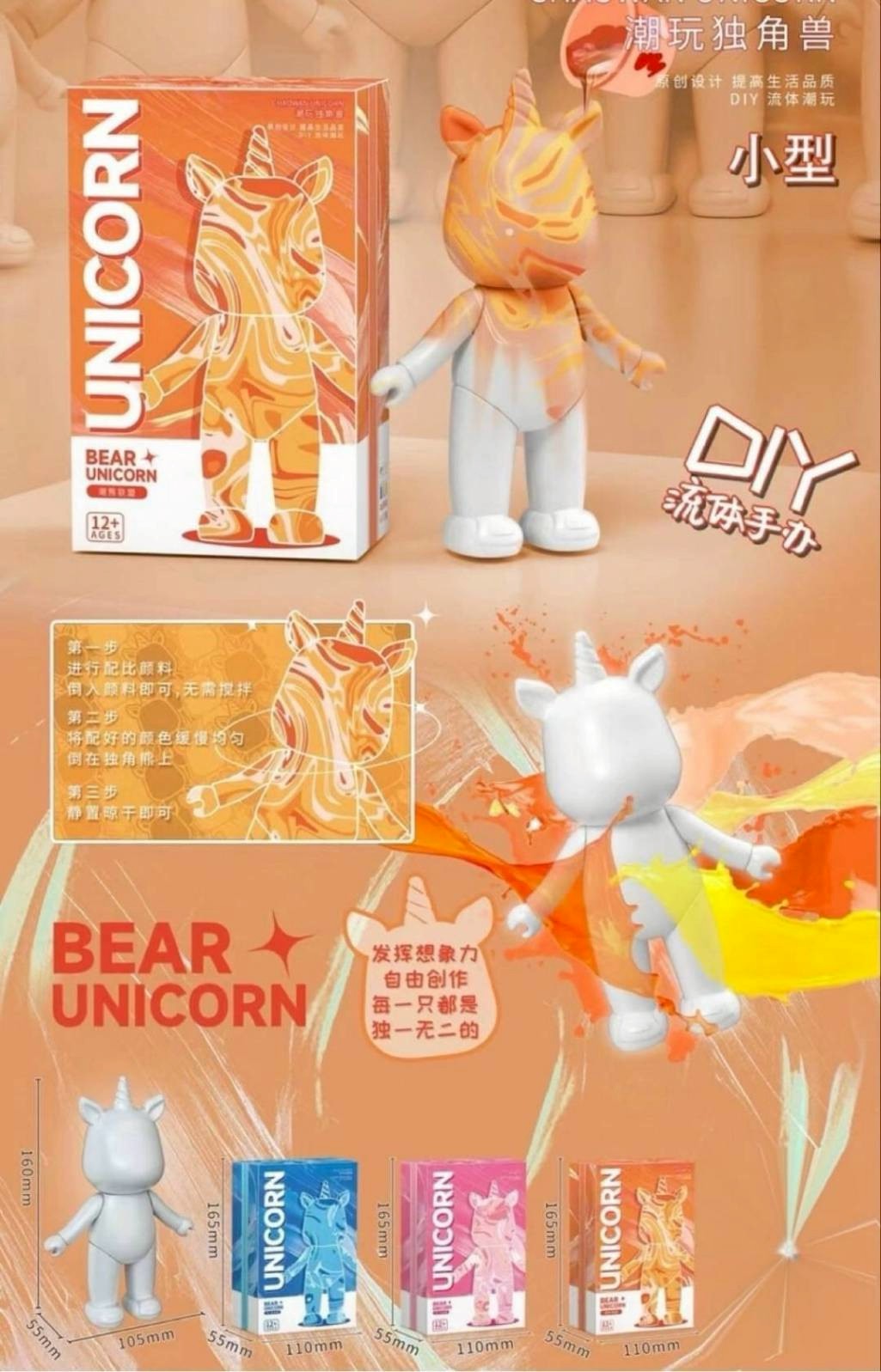 ※加入購物車後,須完成訂單,系統才會轉成最終的批發價格 選購上若有疑問,可取消訂單或是私訊新創小幫手唷! ❤ DIY流體熊獨角獸公仔-中 系列❤ ♥下單 1 個以上 $ 112 /元 ♥下單 2 個以上 $ 77 /元 ♥下單 3 個以上 $ 70 /元 內附顏料DIY 本體尺寸5.5x11x16cm 盒裝尺寸5.5x10.5x16.5cm 一展示盒9入 一箱144入