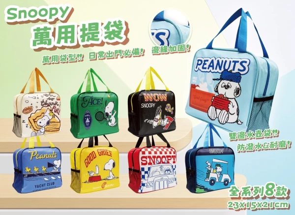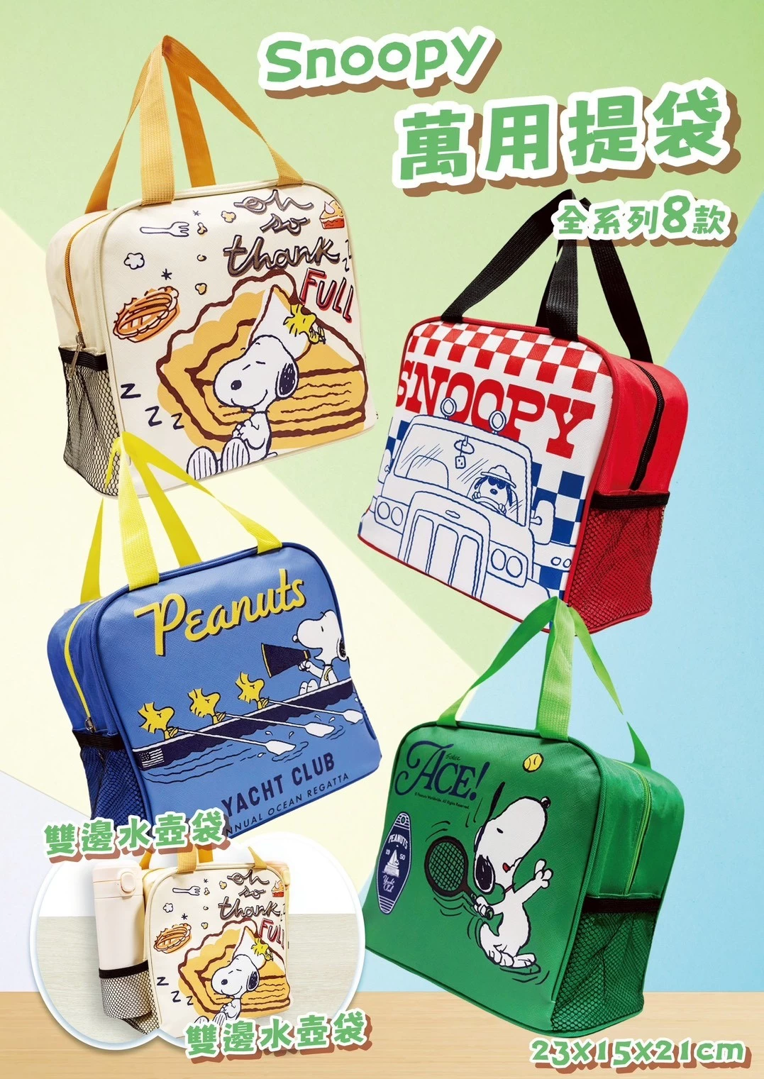 ※加入購物車後,須完成訂單, 系統才會轉成最終的批發價格 選購上若有疑問, 可取消訂單或是私訊新創小幫手唷! ❤ 史努比-萬用提袋(8款) 系列❤ ▪批量級距價格▪ ♥下單 1 個以上 $ 120 /元 ♥下單 4 個以上 $ 83 /元 ♥下單 8 個以上 $ 75 /元 尺寸23x15x21cm 一箱100入 最好賣的袋型 雙邊水壺袋置物佳 穩固包邊,耐用強
