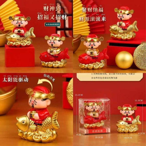 財神到!!NEW太陽能/錦鯉財神擺件(兩色)