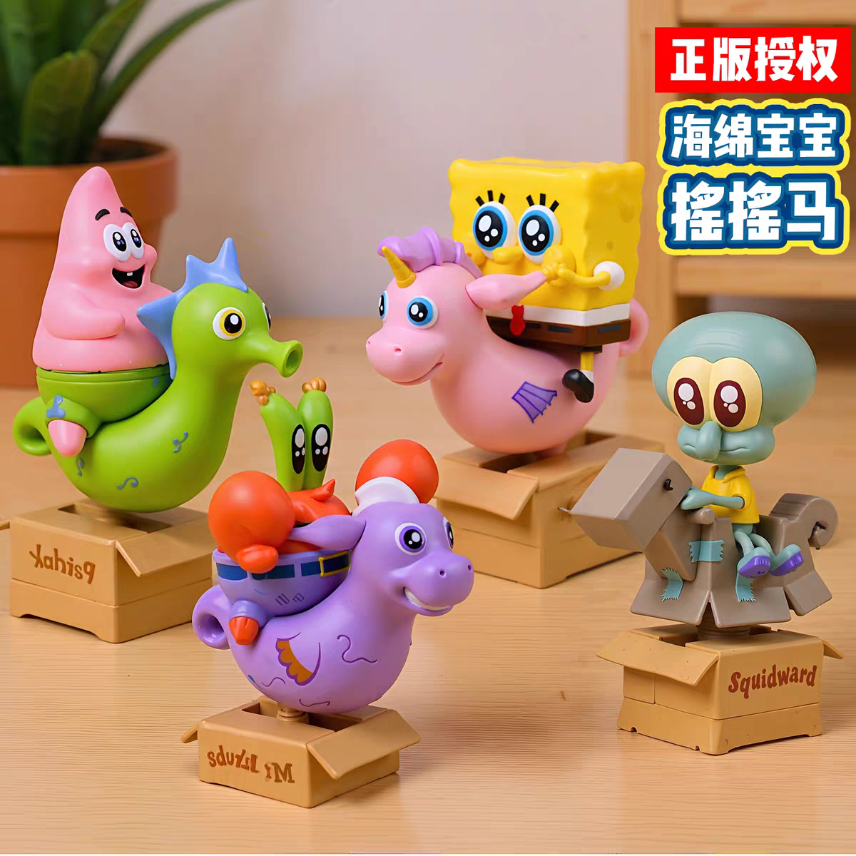 海綿寶寶/搖搖馬可動/手辦盲盒(4入)