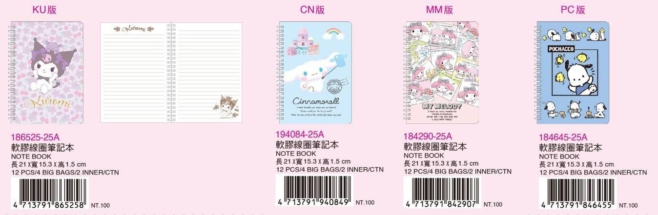 三麗鷗-軟膠線圈筆記本(4款)