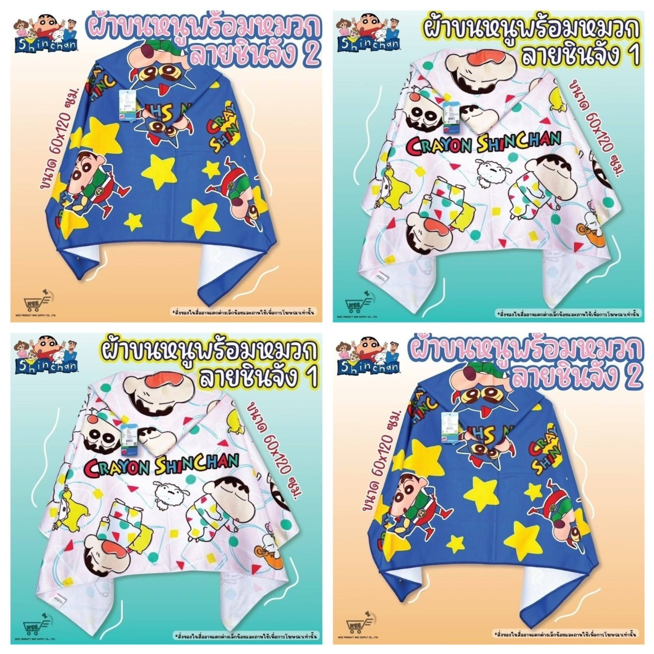 ※加入購物車後,須完成訂單,系統才會轉成最終的批發價格 選購上若有疑問,可取消訂單或是私訊新創小幫手唷! ❤ 泰國限定 系列❤ 蠟筆小新連帽浴巾毯-2款 (小) ▪批量級距價格▪ ♥下單 1 個以上 $ 288 /個 ♥下單 2 個以上 $ 180 /個 隨機出貨或是平均出貨 尺寸60x120cm 材質:100%聚酯纖維 款式:2款(平均出貨/遇缺隨機出貨/能接再下單!) 一箱60入