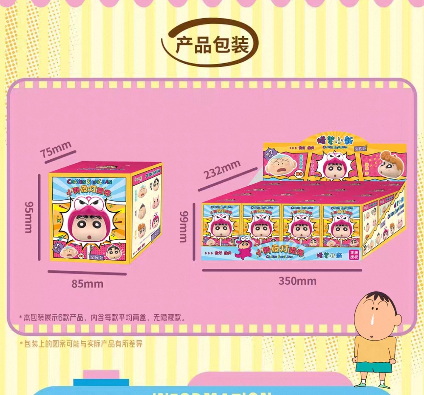 ※加入購物車後,須完成訂單,系統才會轉成最終的批發價格 選購上若有疑問,可取消訂單或是私訊新創小幫手唷! ❤ 蠟筆小新-頭型夜燈掛件盲盒(12入) 系列❤ ▪批量級距價格▪ ♥下單數量"1" 端盒(12入) $ 840 盒/元 ♥下單數量"1" 端盒(12入) $ 840 盒/元 ♥下單數量"1" 端盒(12入) $ 840 盒/元 尺寸:8.5x9.5x7.5cm 端盒尺寸:23.2x35x9.9cm 一端盒12入,整盒販售 一箱192入