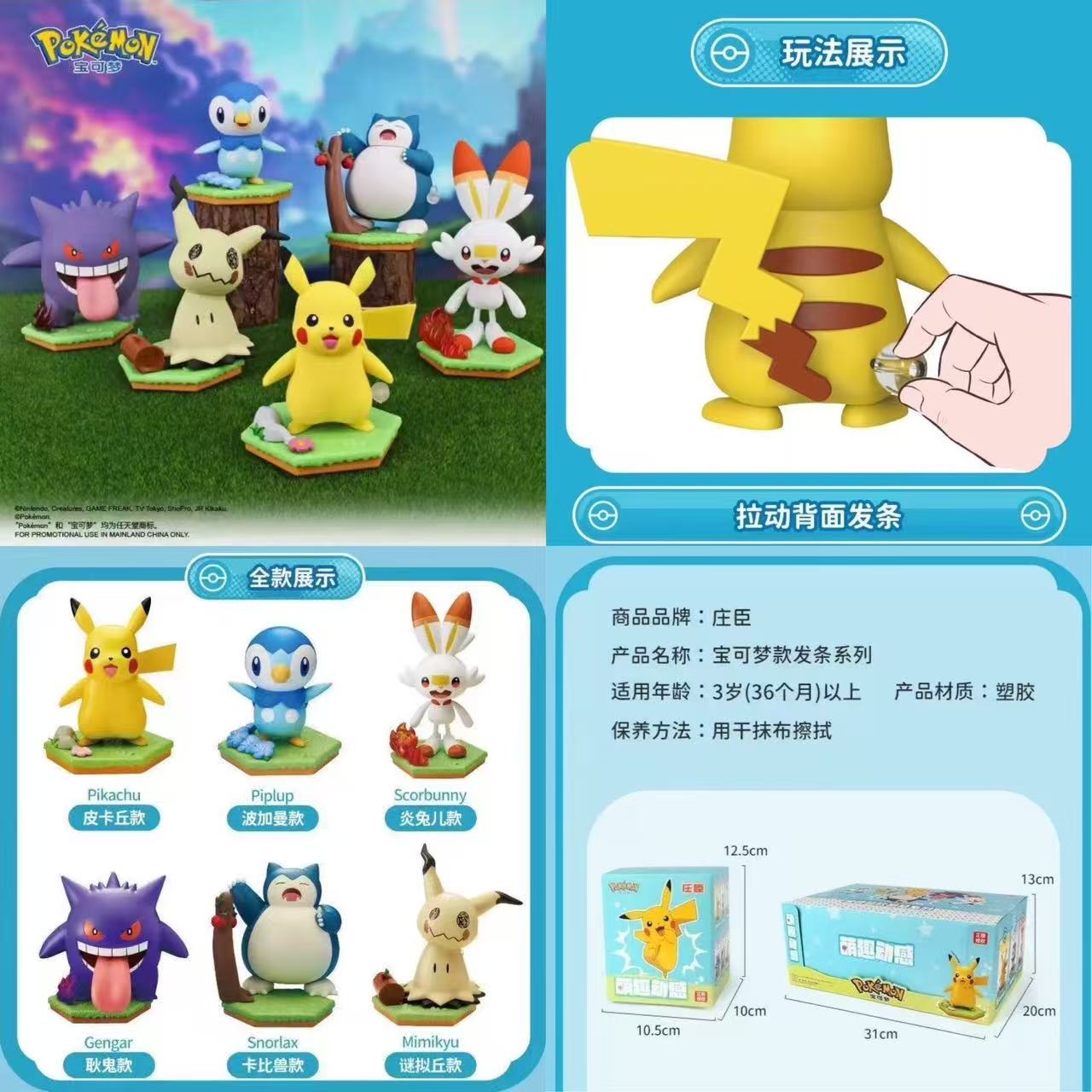 寶可夢-發條可動系列公仔盒玩(6入)