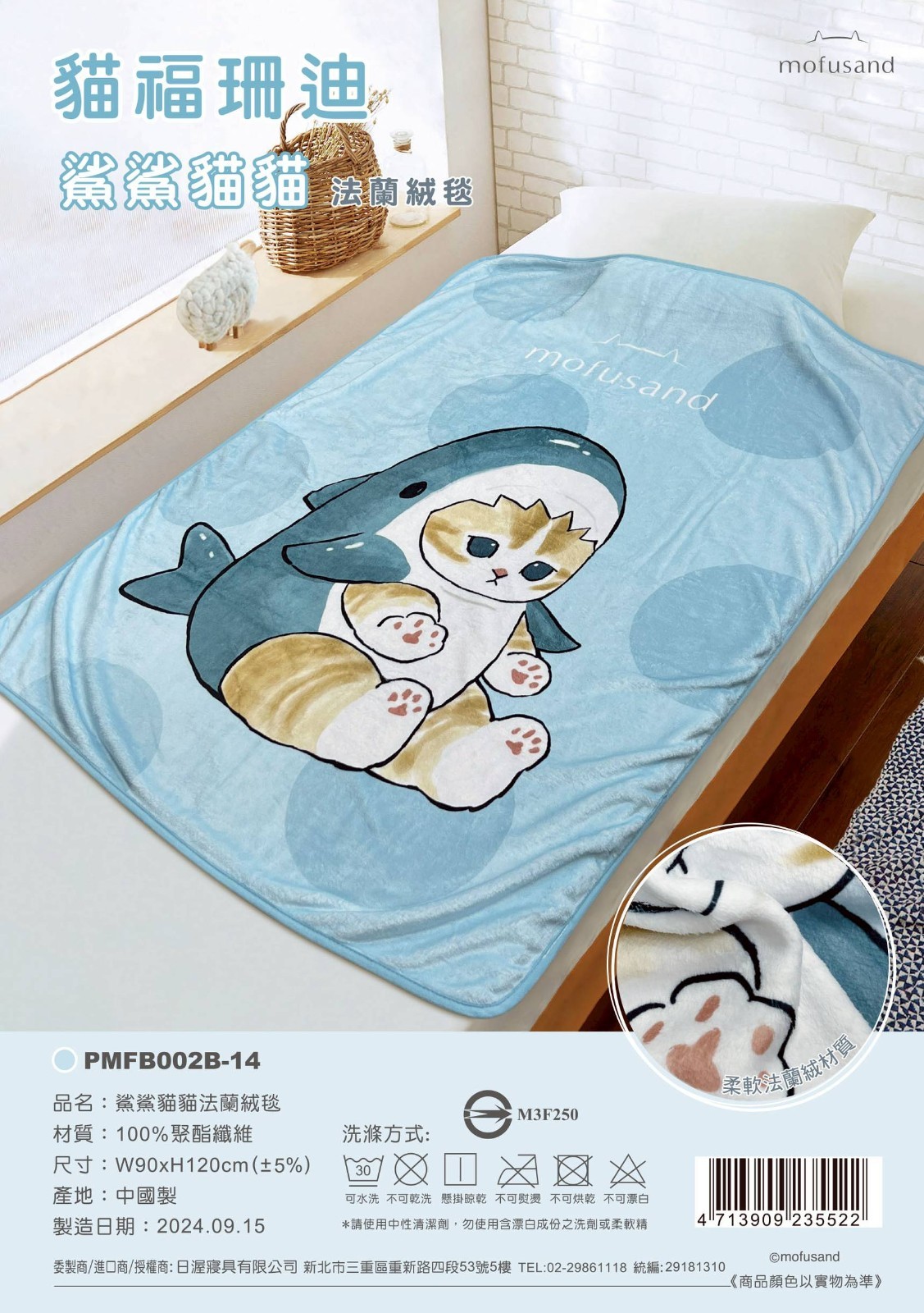 貓福珊迪-鯊鯊貓貓/法蘭絨毯