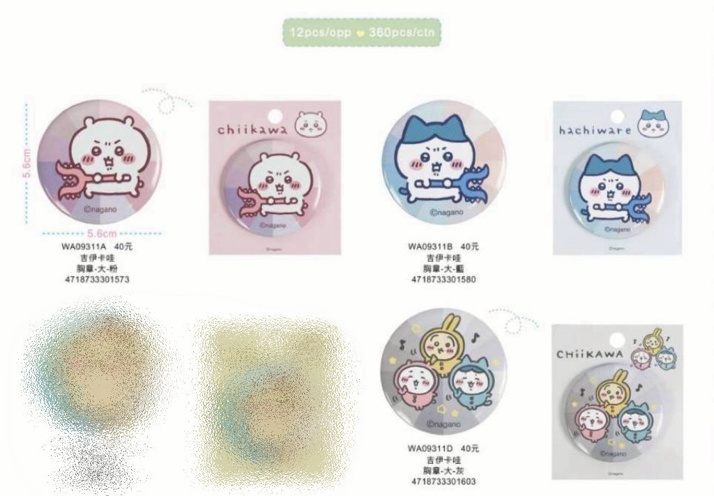 ※加入購物車後,須完成訂單, 系統才會轉成最終的批發價格 選購上若有疑問, 可取消訂單或是私訊新創小幫手唷! ❤ 吉伊卡哇/胸章(三款) 系列❤ ▪批量級距價格▪ ♥下單 1 個以上 $ 32 /元 ♥下單 6 個以上 $ 22 /元 ♥下單 12 個以上 $ 20 /元 尺寸:5.6x5.6cm 款式:吉伊(粉)/小八(藍)/睡衣款(灰) 一包12入 一箱360入