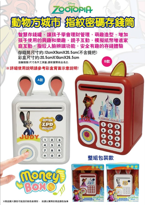 ※加入購物車後,須完成訂單, 系統才會轉成最終的批發價格 選購上若有疑問, 可取消訂單或是私訊新創小幫手唷! ❤ 動物方城市-指紋密碼存錢筒(2款) 系列❤ ▪批量級距價格▪ ♥下單 1 個以上 $ 400 /元 ♥下單 2 個以上 $ 250 /元 尺寸:10x20.5x26.5cm 一箱72入