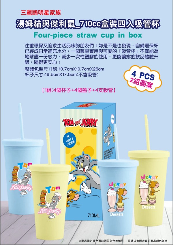 湯姆貓傑利鼠-710cc/四入吸管杯