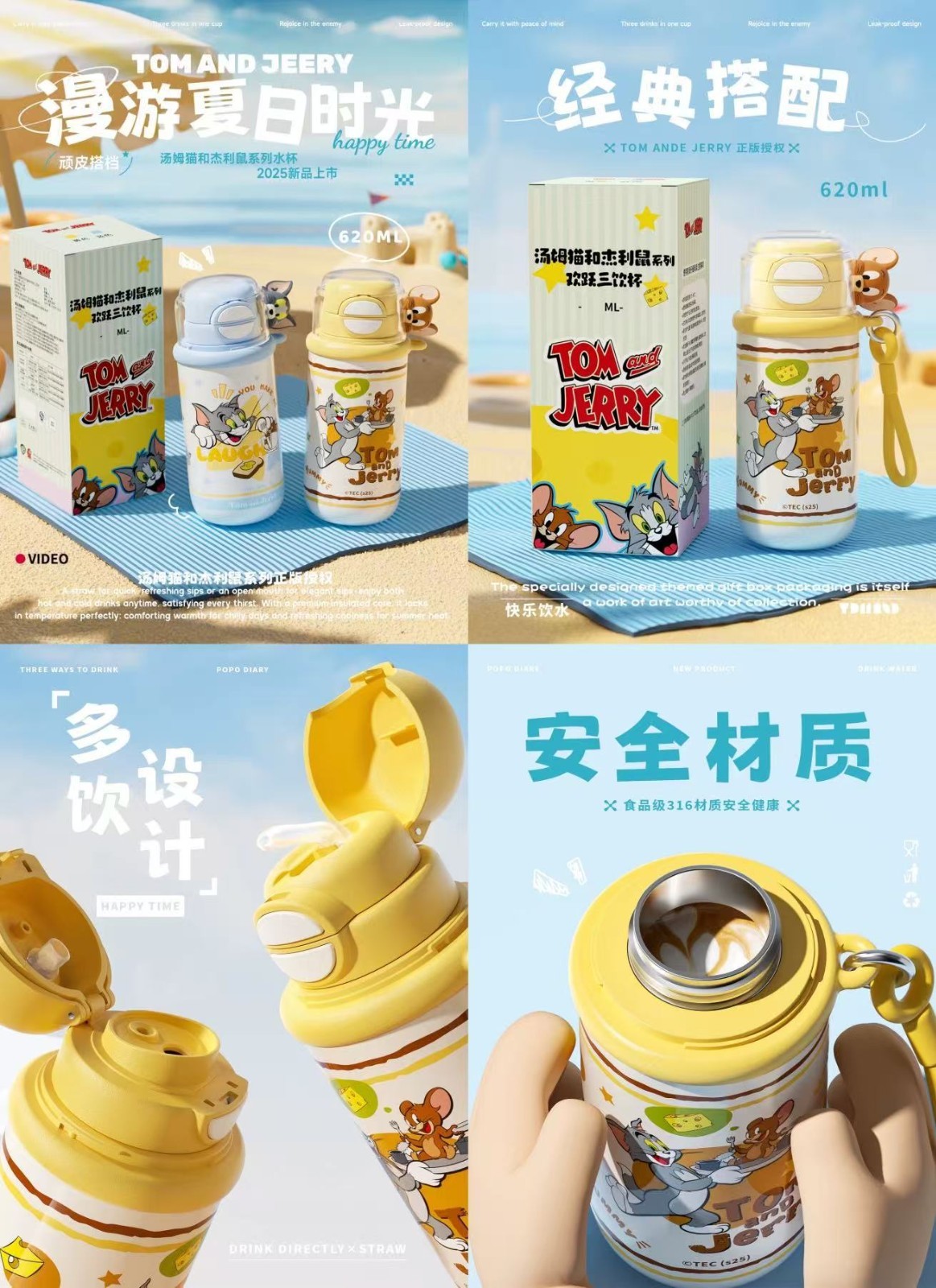 湯姆貓&傑利鼠-歡躍不鏽鋼三飲杯(兩款)