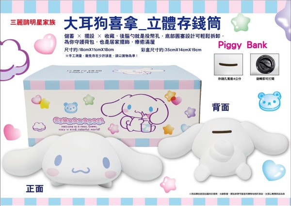 ※加入購物車後,須完成訂單,系統才會轉成最終的批發價格 選購上若有疑問,可取消訂單或是私訊新創小幫手唷! ❤ 大耳狗喜拿-立體存錢筒 系列❤ ▪批量級距價格▪ ♥下單 1 個以上 $ 330 /元 ♥下單 2 個以上 $ 300 /元 尺寸14x35x19cm 一箱24入