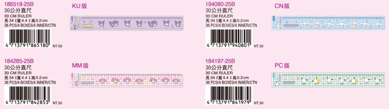 ※加入購物車後,須完成訂單,系統才會轉成最終的批發價格 選購上若有疑問,可取消訂單或是私訊新創小幫手唷! ❤ 三麗鷗-30cm直尺(KU/MM/CN/PC) 系列❤ ▪批量級距價格▪ ♥下單 1 個以上 $ 40 /元 ♥下單 8 個以上 $ 28 /元 ♥下單 12 個以上 $ 25 /元 尺寸:34x44x0.2cm 一盒36入,整合盒販售 一箱576入