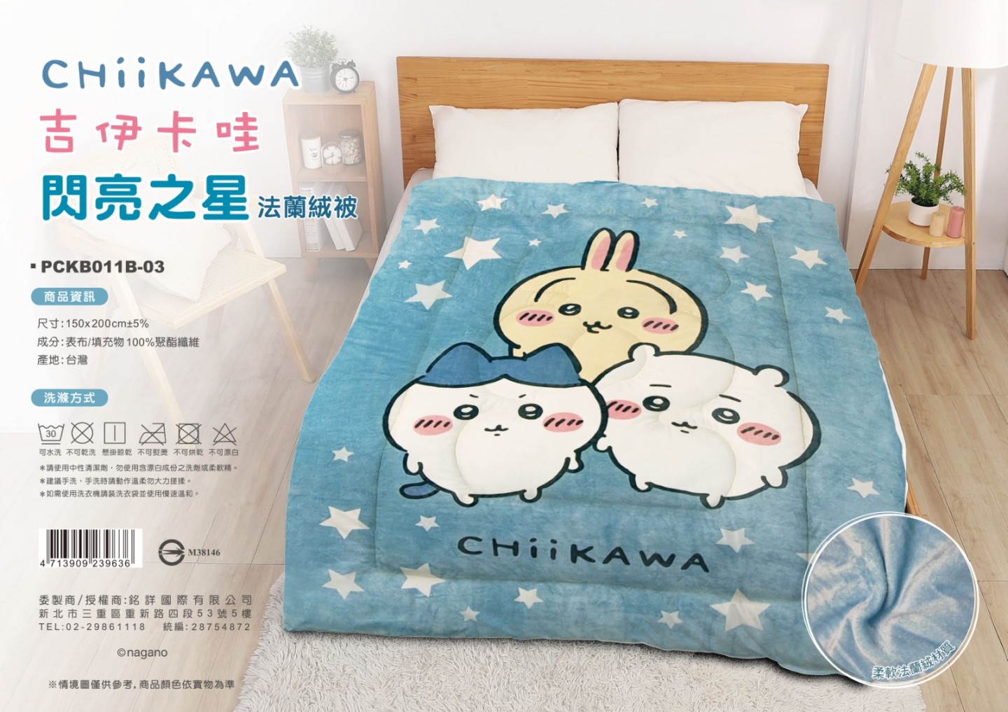 ※加入購物車後,須完成訂單, 系統才會轉成最終的批發價格 選購上若有疑問, 可取消訂單或是私訊新創小幫手唷! ❤ 吉伊卡哇-閃亮之星/法蘭絨/毯被 系列❤ ▪批量級距價格▪ ♥下單 1 個以上 $ 750 /元 ♥下單 1 個以上 $ 750 /元 ♥下單 1 個以上 $ 750 /元 尺寸:150*200公分±5% 材質:表布-聚酯纖維 內容物-聚酯纖維 產地:台灣 1包6入