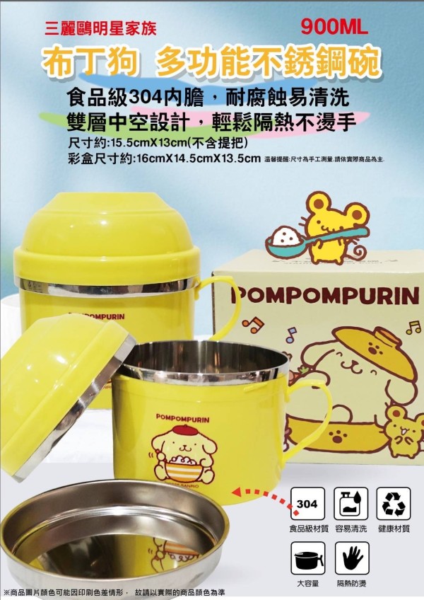 布丁狗-多功能不鏽鋼碗/泡麵碗900ml