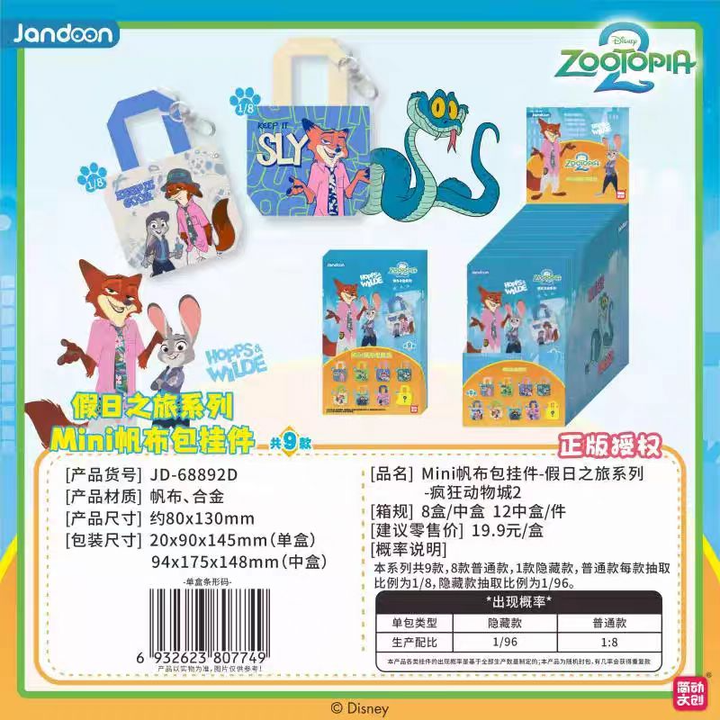 ※加入購物車後,須完成訂單, 系統才會轉成最終的批發價格 選購上若有疑問, 可取消訂單或是私訊新創小幫手唷! ❤ 動物方城市-mini帆布包掛件盲盒(8入) 系列❤ ▪批量級距價格▪ ※盲盒均屬整盒販售※ ♥下單數量"1"端盒 8 入 $ 520 盒/元 ♥下單數量"1"端盒 8 入 $ 520 盒/元 ♥下單數量"1"端盒 8 入 $ 520 盒/元 尺寸:2x9x14.5cm 端盒尺寸:17.5x9.4x14.8cm 一端盒8入,整盒販售 一箱96入