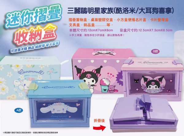 ※加入購物車後,須完成訂單,系統才會轉成最終的批發價格 選購上若有疑問,可取消訂單或是私訊新創小幫手唷! ❤ 三麗鷗-迷你摺疊收納盒 ❤ ▪批量級距價格▪ ♥下單 1 個以上 $ 80 /個 ♥下單 3 個以上 $ 55 /個 ♥下單 6 個以上 $ 50 /個 ※隨機出貨或是平均出貨 尺寸:約 7.5x12.5x8.5cm 一箱288入