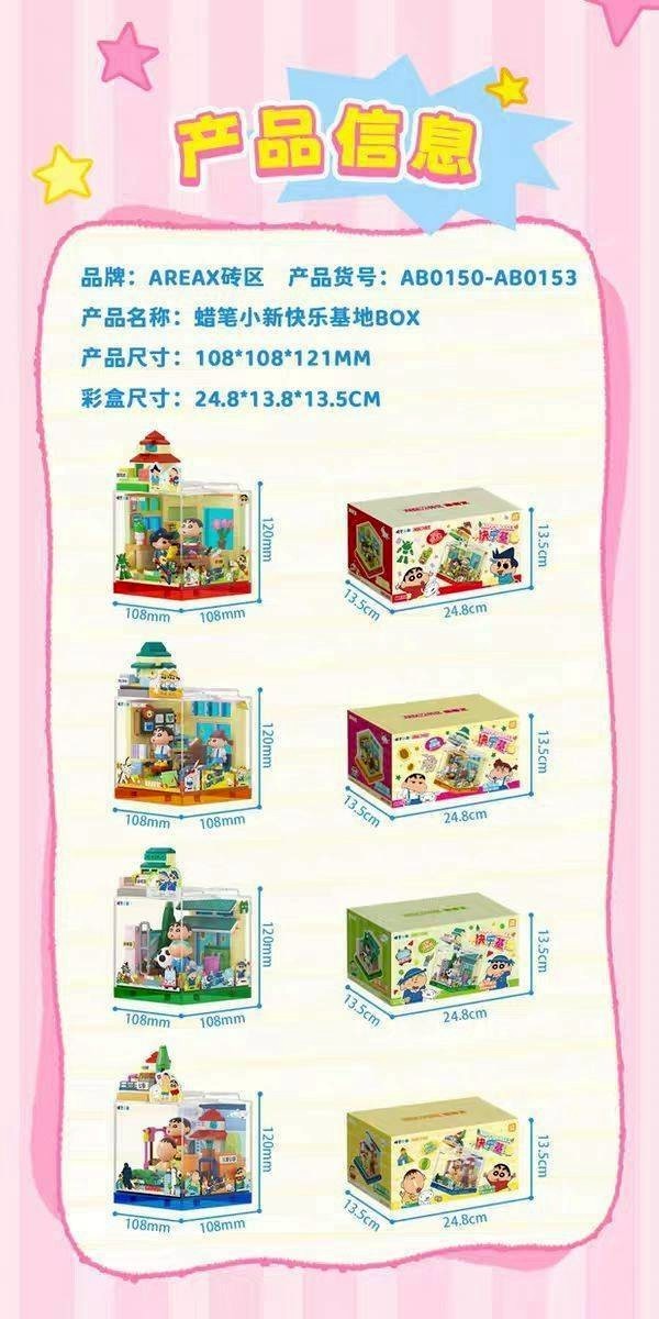※加入購物車後,須完成訂單, 系統才會轉成最終的批發價格 選購上若有疑問, 可取消訂單或是私訊新創小幫手唷! ❤ 蠟筆小新-萌友集快樂基地/壓克力BOX積木 系列❤ ▪批量級距價格▪ ♥下單 1 組以上 $ 320 組/元 尺寸13.5x13.8x24.8cm 一箱18入