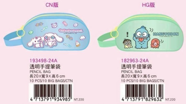 ※加入購物車後,須完成訂單,系統才會轉成最終的批發價格 選購上若有疑問,可取消訂單或是私訊新創小幫手唷! ❤ 三麗鷗-透明手提筆袋(HG/CN) 系列❤ ▪批量級距價格▪ ♥下單 1 個以上 $ 176 /元 ♥下單 2 個以上 $ 121 /元 ♥下單 4 個以上 $ 110 /元 尺寸20x9x6cm 隨機出貨或平均出貨 一盒10入 一箱100入