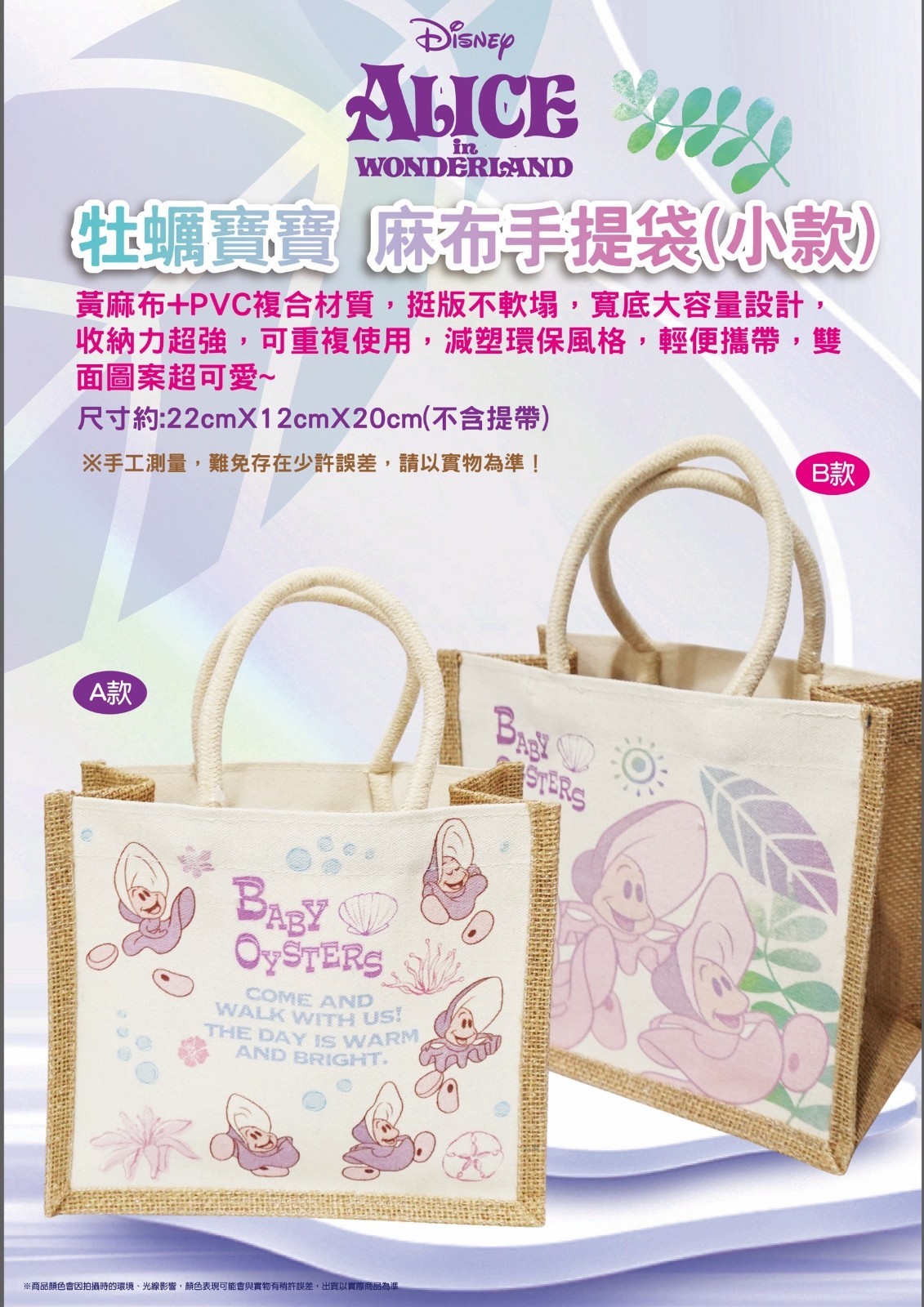 ※加入購物車後,須完成訂單, 系統才會轉成最終的批發價格 選購上若有疑問, 可取消訂單或是私訊新創小幫手唷! ❤ 牡蠣寶寶-麻布手提袋 系列❤ ▪批量級距價格▪ ♥下單 1 個以上 $ 88 /元 ♥下單 6 個以上 $ 61 /元 ♥下單 10 個以上 $ 55 /元 尺寸12x20x22cm 隨機出貨或是平均出貨 一箱100入