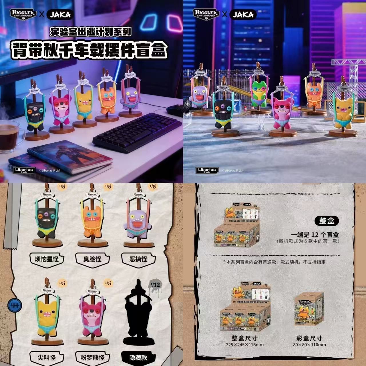 FUGGLER-放克牙寶/怪獸背帶/鞦韆擺件盲盒(12入)