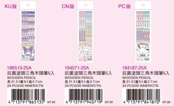 三麗鷗-新!抗菌三角木頭筆(PC/KU/CN款)
