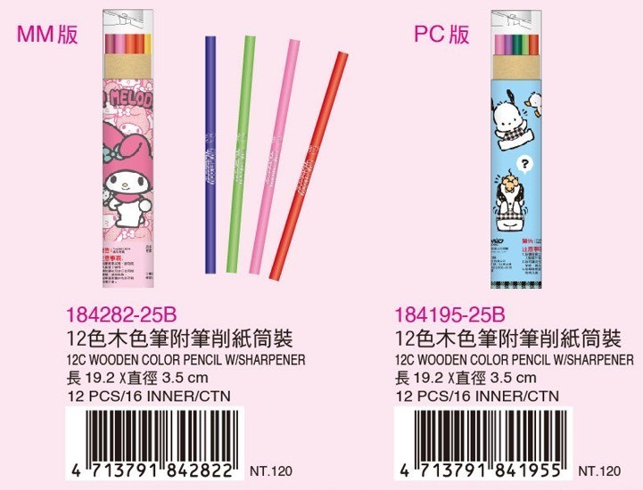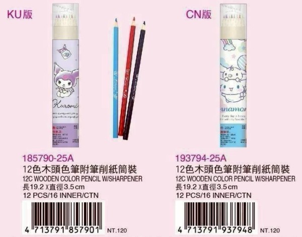 三麗鷗-12色木頭色筆/附比削紙裝桶(4款)
