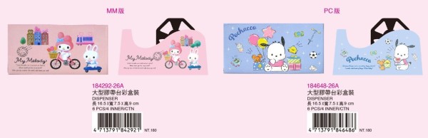 ※加入購物車後,須完成訂單,系統才會轉成最終的批發價格 選購上若有疑問,可取消訂單或是私訊新創小幫手唷! ❤ 三麗鷗-大型膠帶台彩盒裝(帕洽狗&美樂蒂) 系列❤ ▪批量級距價格▪ ♥下單 1 個 $ 144 元/個 ♥下單 2 個 $ 90 元/個 尺寸16.5x7.5x9.5cm 隨機出貨或是平均出貨 一盒6入 一箱24入