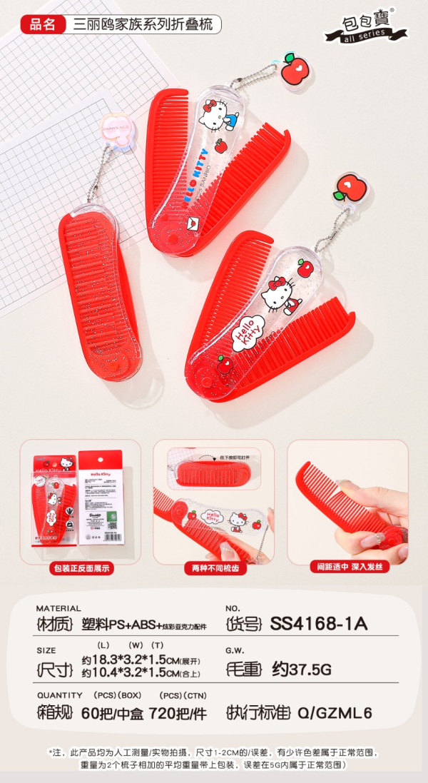 ※加入購物車後,須完成訂單, 系統才會轉成最終的批發價格 選購上若有疑問, 可取消訂單或是私訊新創小幫手唷! ❤ KT-紅蘋果折疊梳 系列❤ ▪批量級距價格▪ ♥下單 1 個以上 $ 61 /元 ♥下單 6 個以上 $ 42 /元 ♥下單 12 個以上 $ 38 /元 SS4168-1A 折疊尺寸1.5x3.2x10.4cm 展開尺寸1.5x3.2x18.3cm 一包12入,整包販售 一箱720入