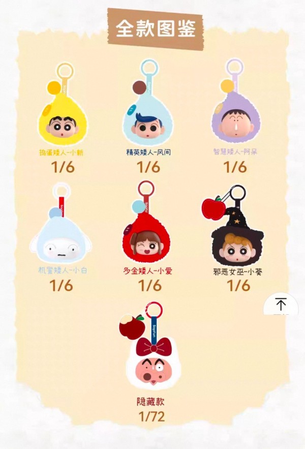 ※加入購物車後,須完成訂單, 系統才會轉成最終的批發價格 選購上若有疑問, 可取消訂單或是私訊新創小幫手唷! ❤ 蠟筆小新-矮人童話掛件/小包盲盒(6入) 系列❤ ▪批量級距價格▪ ※盲盒均屬整盒販售※ ♥下單數量"1"端盒 6 入 $ 1140 盒/元 ♥下單數量"1"端盒 6 入 $ 1140 盒/元 ♥下單數量"1"端盒 6 入 $ 1140 盒/元 尺寸10x10x13cm 端盒尺寸30.5x20.5x13.5cm 一端盒6入,整盒販售 一箱72入