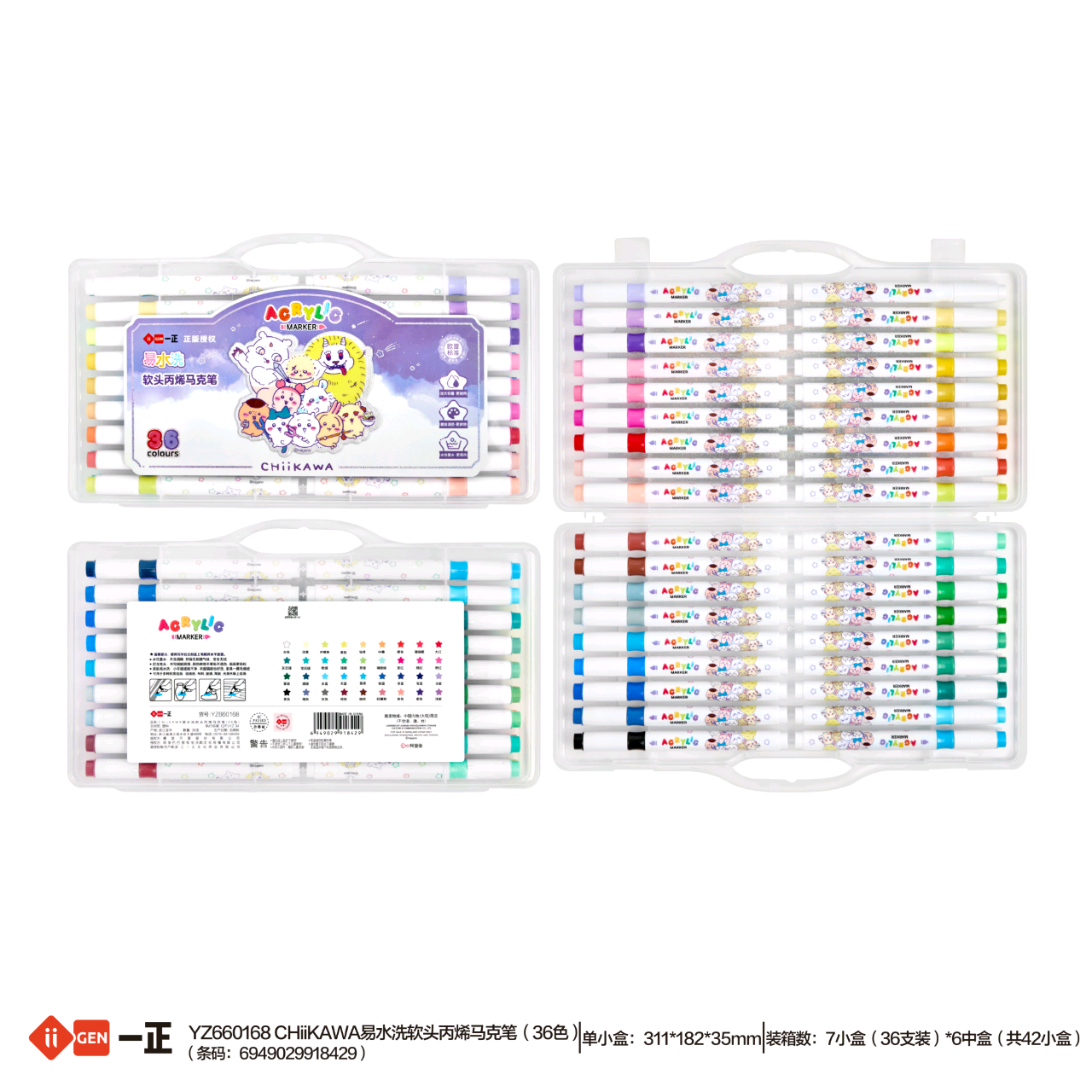 吉伊卡哇-易水洗軟頭/36色/麥克筆組