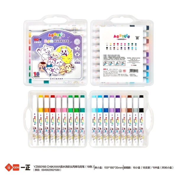 ※加入購物車後,須完成訂單, 系統才會轉成最終的批發價格 選購上若有疑問, 可取消訂單或是私訊新創小幫手唷! ❤ 吉伊卡哇-易水洗軟頭18色麥克筆組 系列❤ ▪批量級距價格▪ ♥下單 1 組以上 $ 160 /元 ♥下單 2 組以上 $ 110 /元 ♥下單 4 組以上 $ 100 /元 尺寸:1.5x15cm PP盒尺寸:3.5x15.9x18.5cm 一盒16入 一箱96入
